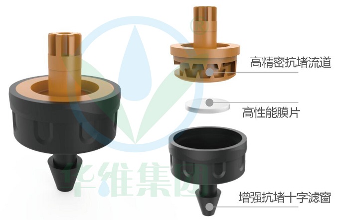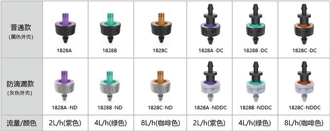 支管長度50米以內的平坦地勢,滴箭和1823等滴頭組合使用起到紊流作用,實現灌溉的均勻性和精準性;支管長度大于50米或有落差的地勢或灌溉需求較高的作物,滴箭和1828壓力補償滴頭組合使用,實現不同出水口、不同分流之間的灌溉均勻性和精準性。